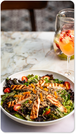 Além disso, oferecemos opções vegetarianas e veganas, garantindo que todos os clientes possam desfrutar de uma boa refeição. E para acompanhar os pratos, o restaurante conta com uma carta de vinhos selecionada, que oferece opções para harmonizar com cada prato do menu.